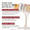 کاهش محسوس منافذ و پوستی صاف: فرمول قدرتمند این سرم با چهار نوع ماده مؤثر برنج به سفتکردن و کاهش ظاهری اندازه منافذ کمک میکند و پایهای صاف برای آرایش یا پوستی بیعیب در روزهای بدون آرایش فراهم مینماید.