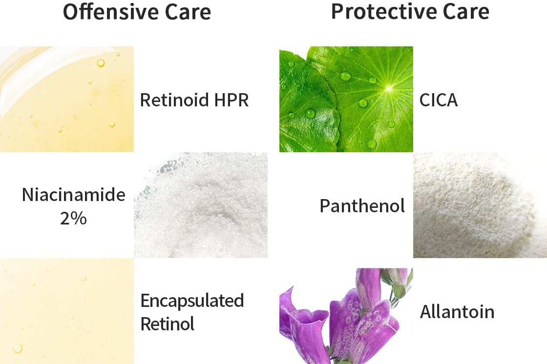 رتینول کپسولهشده: این ماده به بهبود بافت پوست و کاهش خطوط ریز کمک کرده و در کنار HPR، اثربخشی محصول را افزایش میدهد.
