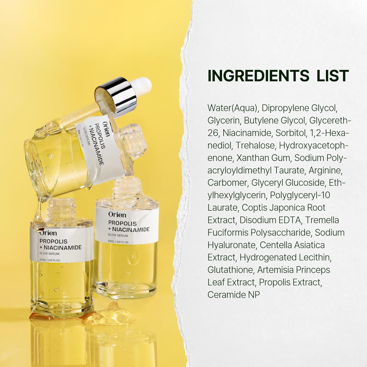 سرم پروپولیس و نیاسیـنامید اورین یک سرم تخصصی مراقبت از پوست است که با ترکیبی علمی از پروپولیس، گلوتاتیون، ناسیـنامید، سنتلا و سرامید، بهطور هدفمند تیرگی، کدری و خشکی پوست را کاهش میدهد و به افزایش شفافیت، یکنواختی و سلامت کلی پوست کمک میکند. نتیجه استفاده، پوستی روشنتر، نرمتر و درخشانتر همراه با سد دفاعی قویتر خواهد بود.