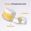 - هشت نوع هیالورونیک اسید: به همراه پانتنول و میکروسوزنهای سفید، پوست را به شدت آبرسانی کرده و به آن درخشندگی میبخشد.