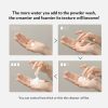 - مقدار نصف قاشق چایخوری از پودر را در دست ریخته و با آب گرم مخلوط کنید تا فوم کرمی ایجاد شود.