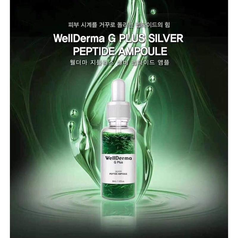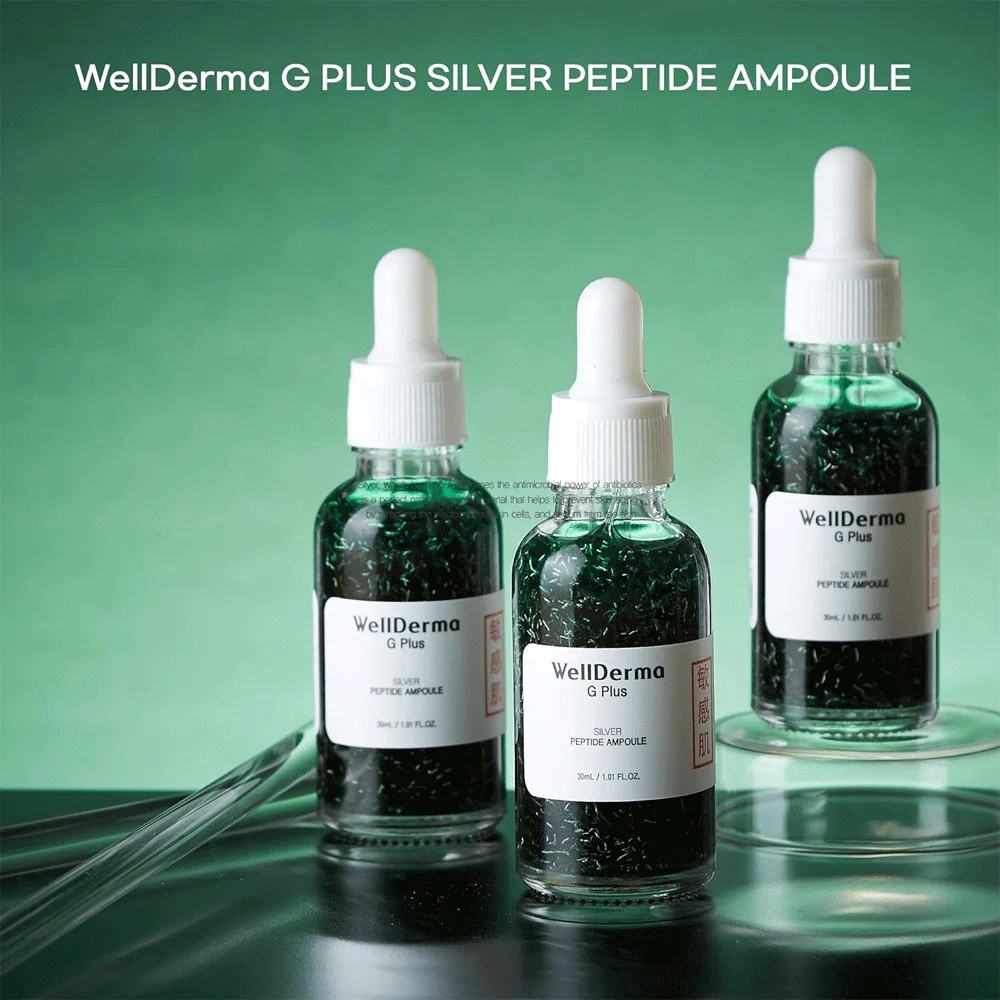 آمپول پپتید نقره ای G Plus WellDerma یک آمپول مغذی است که به جوانسازی و بهبود خاصیت ارتجاعی پوست با استفاده از عنصر نقره و کمپلکس 5 پپتیدی کمک می کند. عصاره انار موجود در این آمپول که سرشار از آنتی اکسیدان است به کاهش رادیکال های آزاد و شفاف و صاف شدن پوست کمک می کند. این آمپول همچنین حاوی نیاسینامید و آدنوزین است که 2 ماده تأیید شده برای روشن شدن پوست و بهبود چین و چروک هستند.
